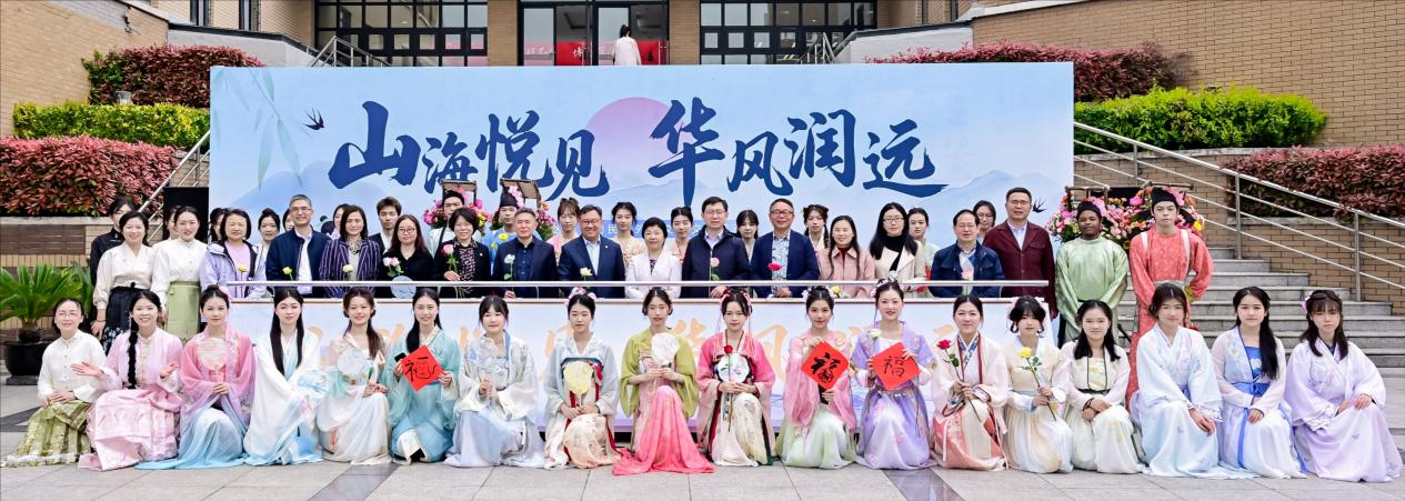 为了让中华优秀传统文化不再是书本里的文字,而是可触摸、可体验、可共情的鲜活体验,活动开场前特别打造了“山海初遇”国风雅集,将传统礼仪、非遗技艺、春日雅趣凝萃为沉浸式互动场景,搭建中外师生文化交流的平台。