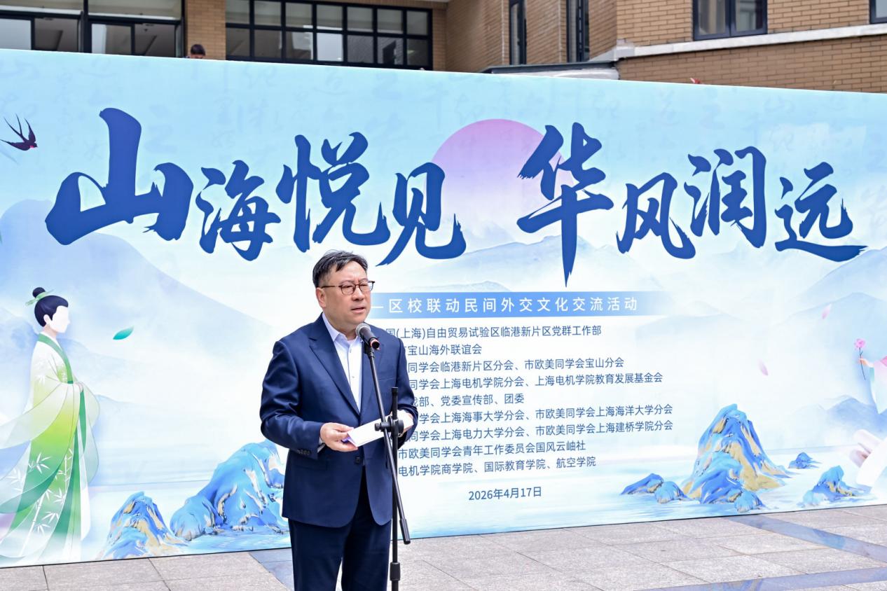 4月17日,“山海悦见,华风润远”欧美同学会区校联动民间外交文化交流活动在上海电机学院临港校区举行。本次活动由中国(上海)自由贸易试验区临港新片区党群工作部、上海市宝山海外联谊会指导,上海市欧美同学会临港新片区分会、宝山分会、上海电机学院分会等主办,上海海事大学分会、上海海洋大学分会、上海电力大学分会、上海建桥学院分会等协办,市欧美同学会青年工作委员会国风云岫社、上海电机学院商学院、国际教育学院、航空学院等单位承办。