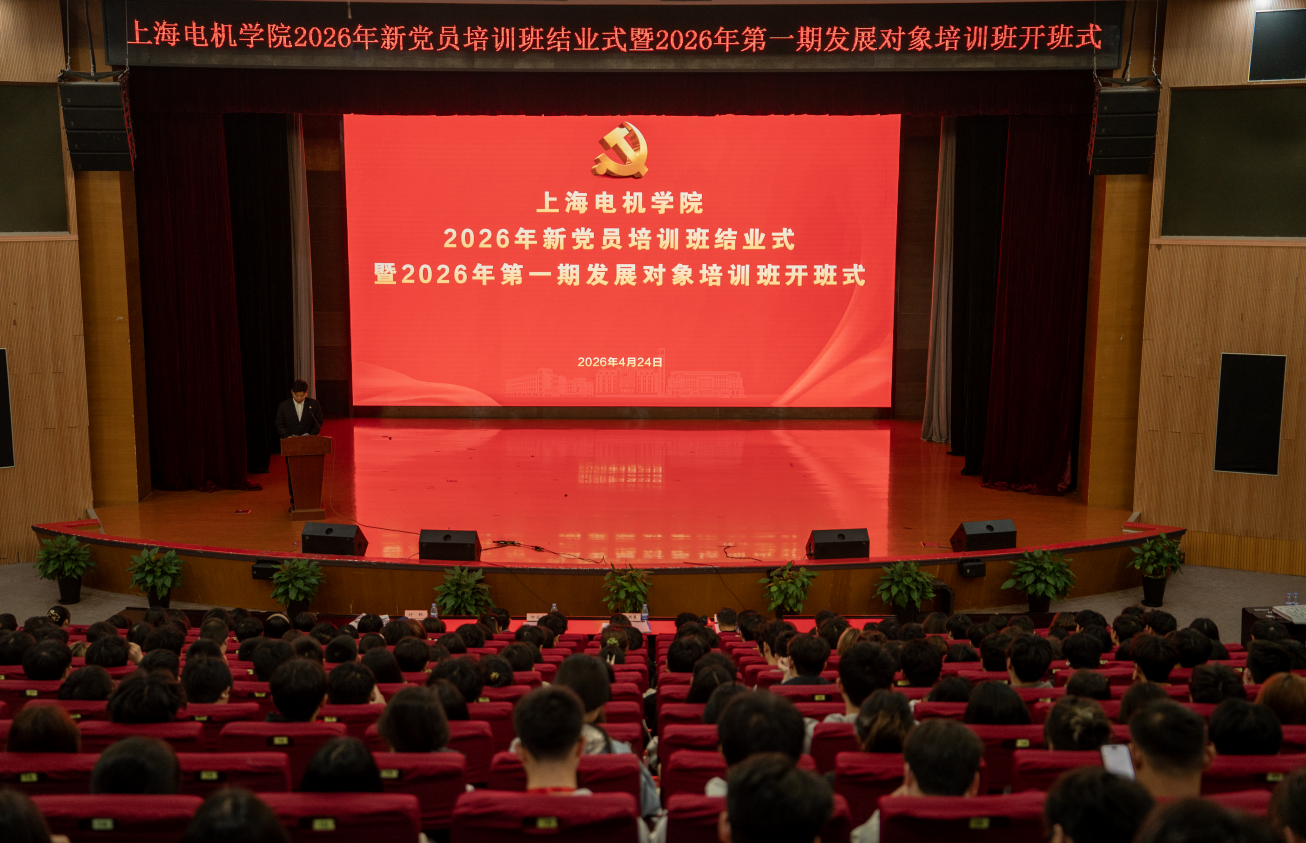 4月24日下午,上海电机学院2026年新党员培训班结业式暨第一期发展对象培训班开班式在临港校区小剧场举行。学校党委副书记朱洪春出席并讲话,党委组织部副部长、党校教务长卿海龙,党委组织员陈勇,党委组织部组织科科长、党校班主任计枫及全体新党员培训班学员、发展对象培训班学员、教职工入党积极分子代表参加仪式。仪式由商学院学生党员李申主持。